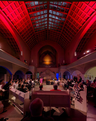 Marc Weiser und Heiko Michels zelebrieren gemeinsam mit einem Chor aus Gemeindemitgliedern örtlicher Kirchen als weltliche Messe eine Totenfeier der Demokratie... mit dem Ziel, ihre Werte neuartig zum Aufscheinen zu bringen.